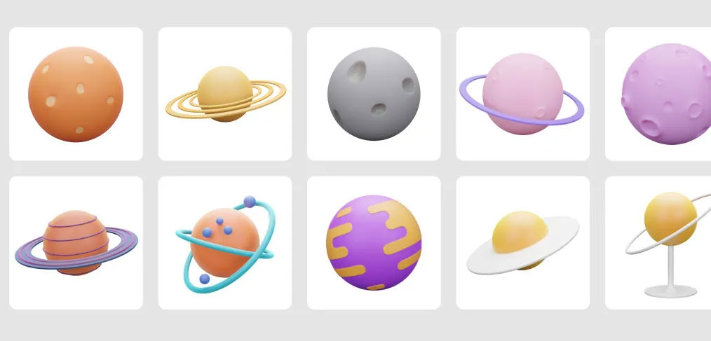A free colorful set of twelve 3D planet Figma vector illustrations. Some of the images have rings like Saturn. There is even an image of a planet orbiting around the sun. You can use these attractive comic-style illustrations on your landing pages or mobile app screens, to create “out-of-this-world” designs! This new Figmafreebie was made by Dddkit.