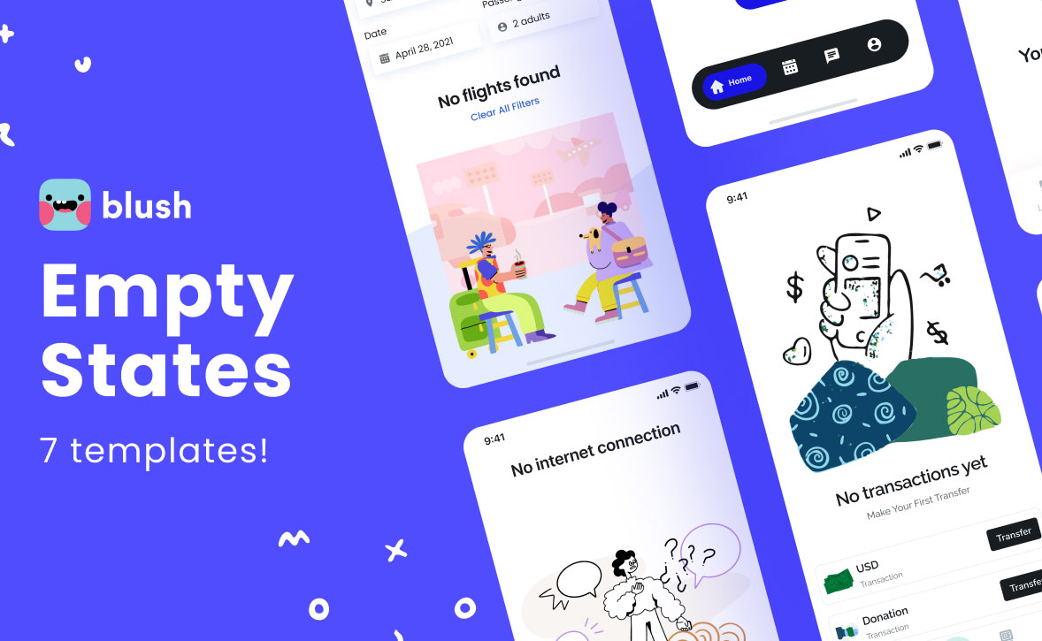 A new Figma template resource for your list. Blush has shared this collection of 7 empty state Figma templates that you can use in several scenarios where an empty state screen is required, such as: