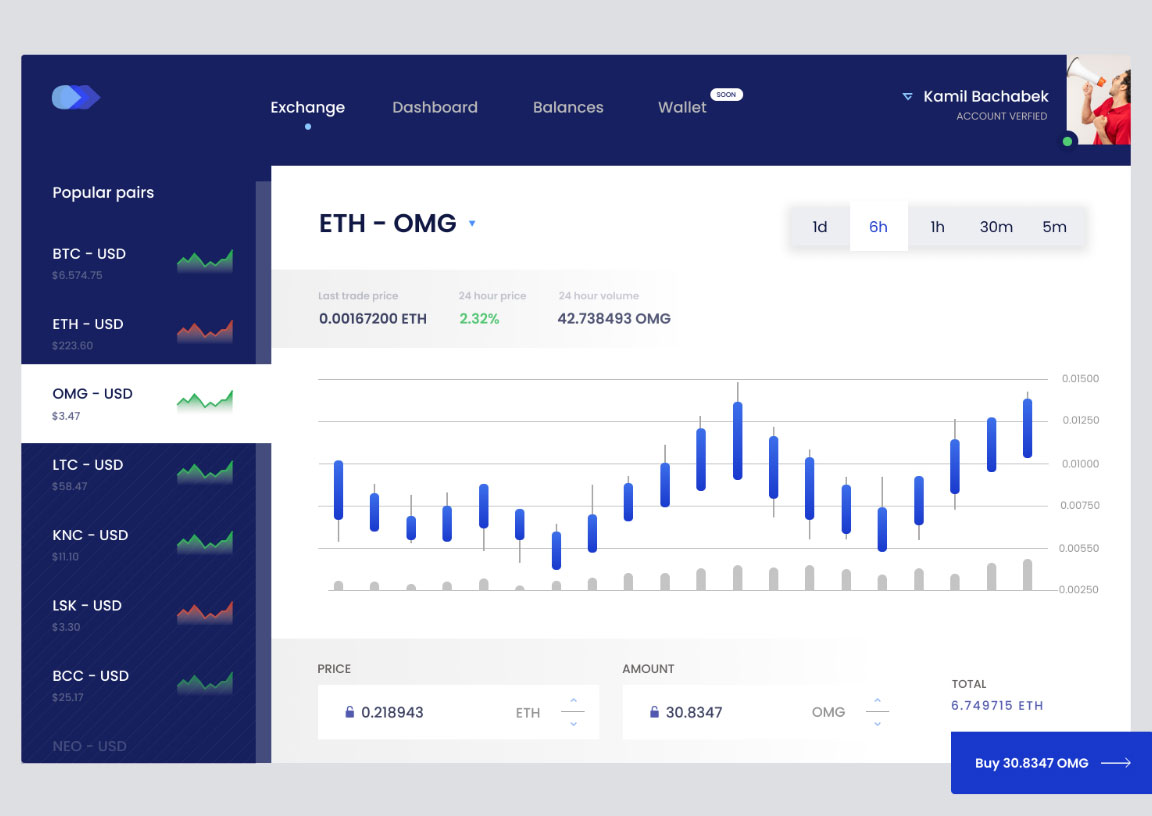 This is a Crypto exchange template designed in Figma. It shows various cryptos pairs and charts. It also has options for a menu at the top and buttons for buying cryptos. This new Figma freebie was designed by Niqox. Thanks for making this available to everyone.