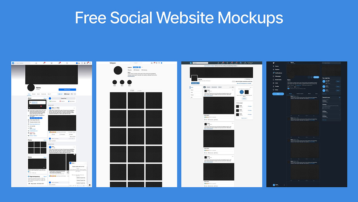 A set of free mockups for social network websites created in Figma. Anja van Staden who designed this new freebie and decided to share it with the community.