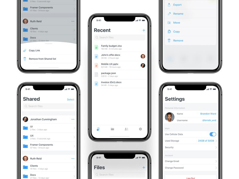 A free clean and minimal file sharing app (like xender, share it, google file manager) design UI kit template made in Figma. This awesome concept design shared by Andrew Tanchuk. Nice done and keep it up!
