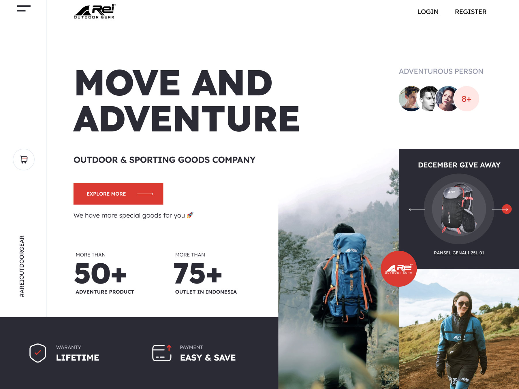 A free homepage concept for a travel website designed in Figma. This is a unique design concept with square and rectangular photos on the home page. The collapsible menu at the left takes up less space. This gives you more space for the content of the page. Many thanks to Triyandi Saputra who created and shared this new resource.