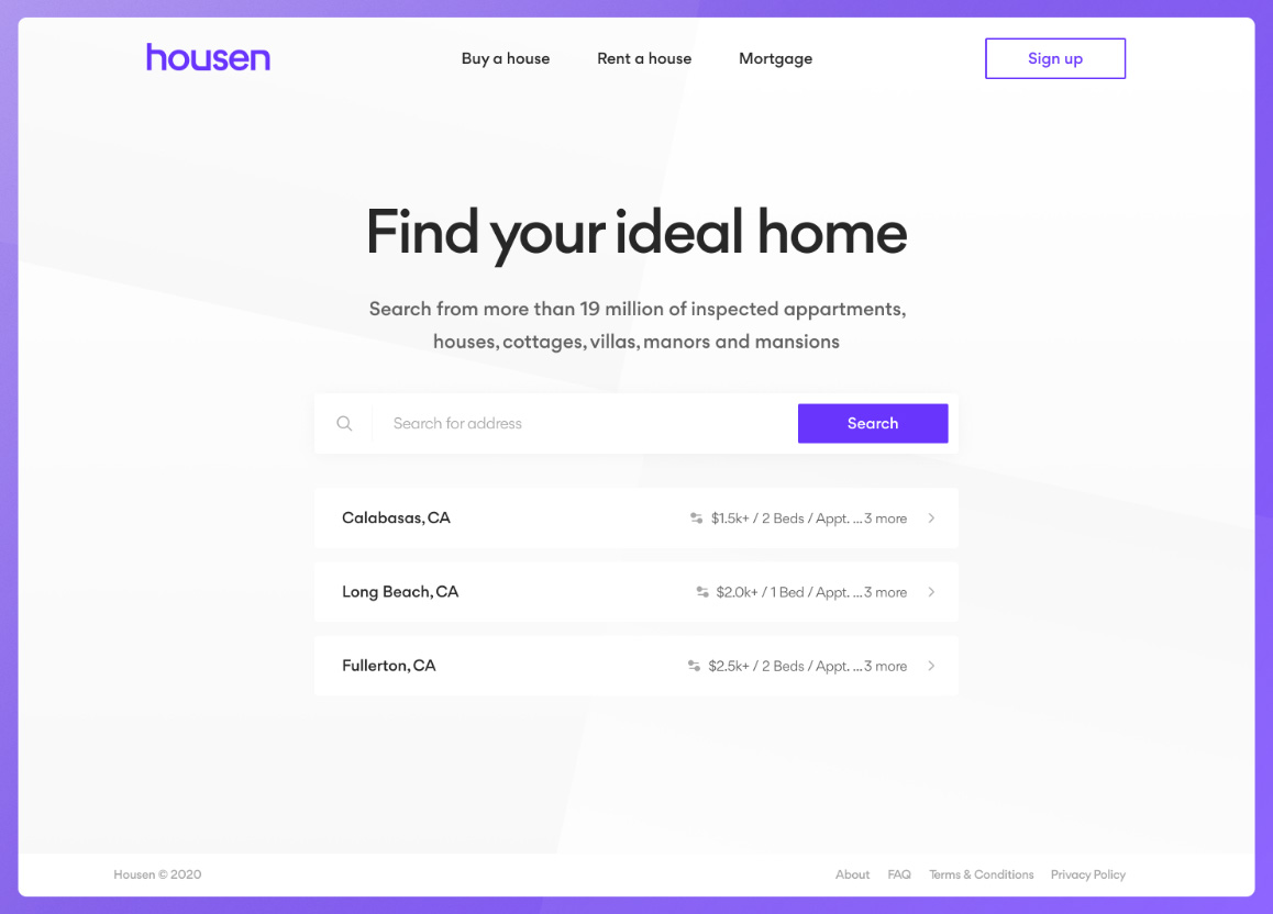 This is a minimal style website template for real estate. You can search for addresses and view the property results that are found. This cool new Figma resource shared by Andrew Kréitor. Nice!