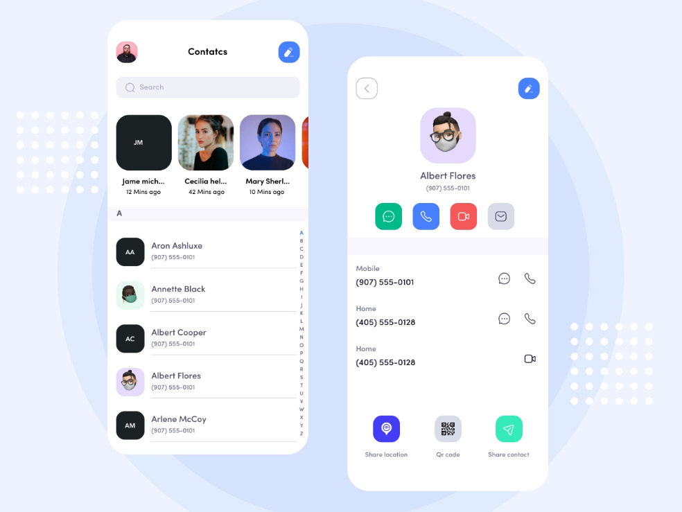 This is a design for a mobile contacts screen done in Figma. The author has given it a fresh and modern look. A great addition to your list of freebies.This new freebie designed and shared in the community by Balogun AbdulAzee.