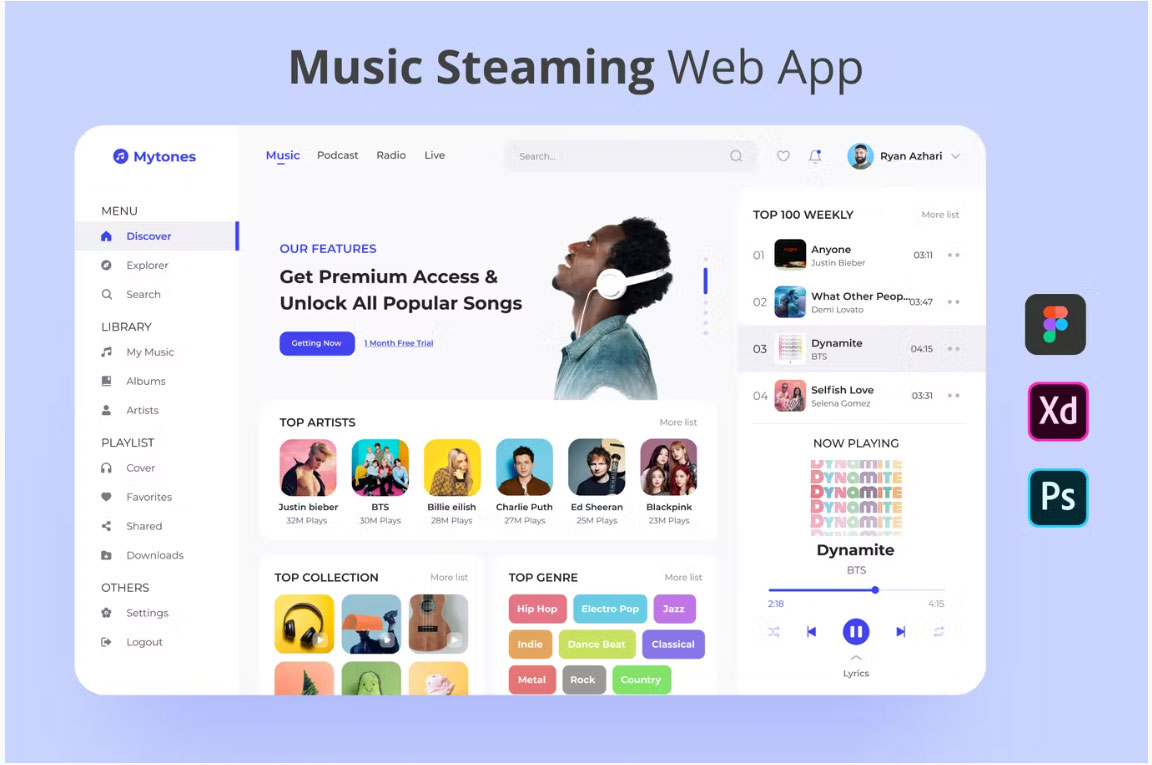 A music streaming web app called Mytones is a simple yet useful PSD resource that Seakr Mark L decided to release and share with the freebie community. Happy downloading!