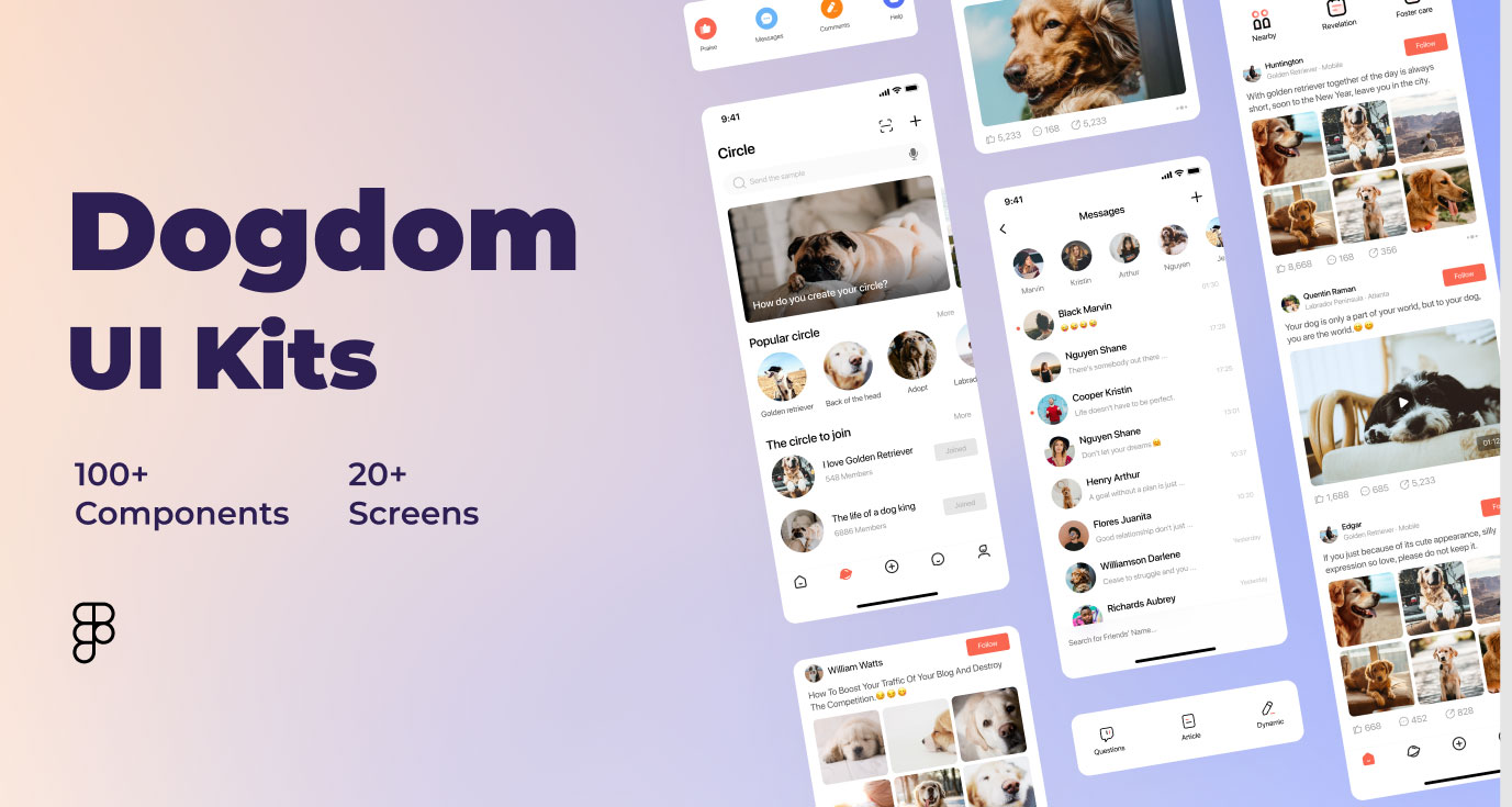 A free Figma pets app mobile UI kit that has all the components you might need to create a mobile app for pets communities. The kit has more than 20 screens and 100+ components. Tremendous effort, we are sure you will love it. Check out today’s latest figma freebie, created by Ones.