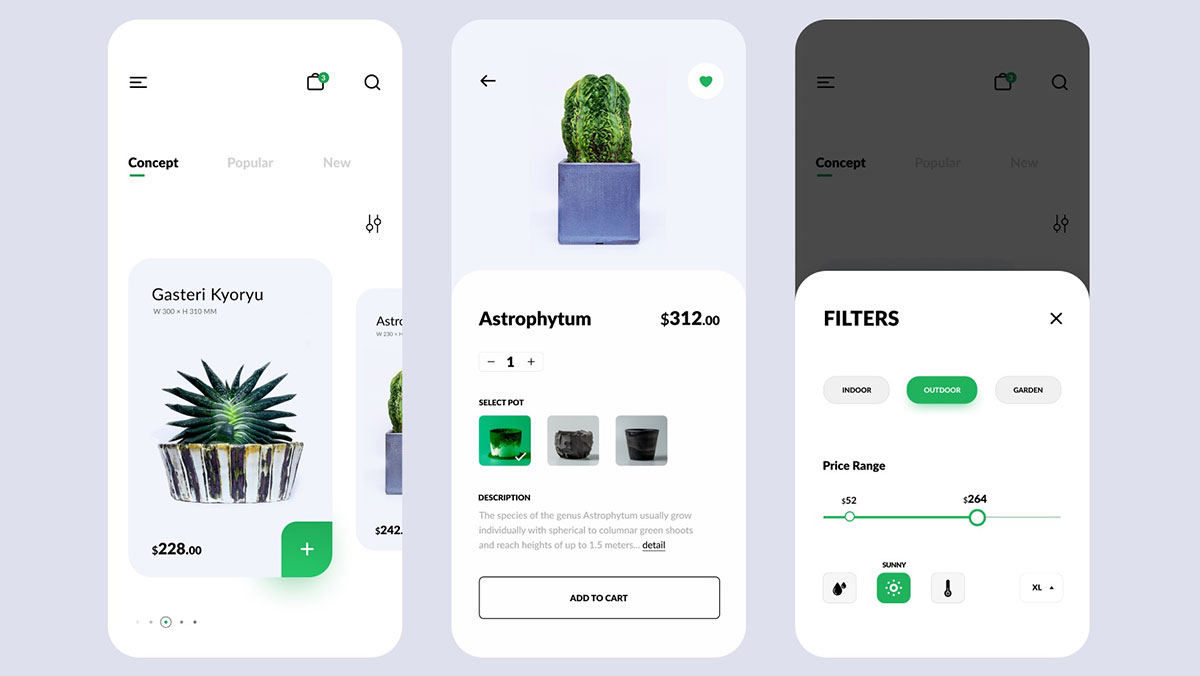 A free plant shopping e-commerce mobile app designed in Figma. This nice little freebie kindly shared by Eda Gurdamar. Great job!